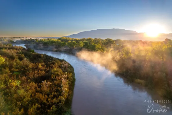 Read MoreA drone photograph above the Rio Grande River at sunrise.