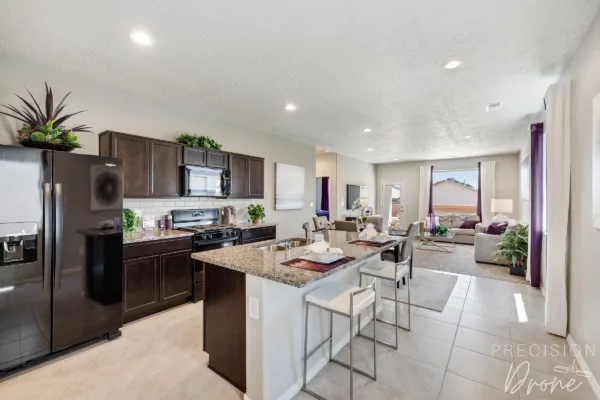 Read MoreA photograph of a well-lit home, showcasing the kitchen and living area.
